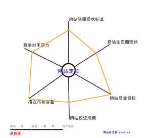 下面是中心企業(yè)的一個網(wǎng)站定位六維簡圖,僅供參考,從圖的面積大小不難看出,目前中小企業(yè)網(wǎng)站開發(fā)還處于比較低的階段,為企業(yè)建立高品質(zhì)網(wǎng)站是我們福州印秀永恒不變的訴求。