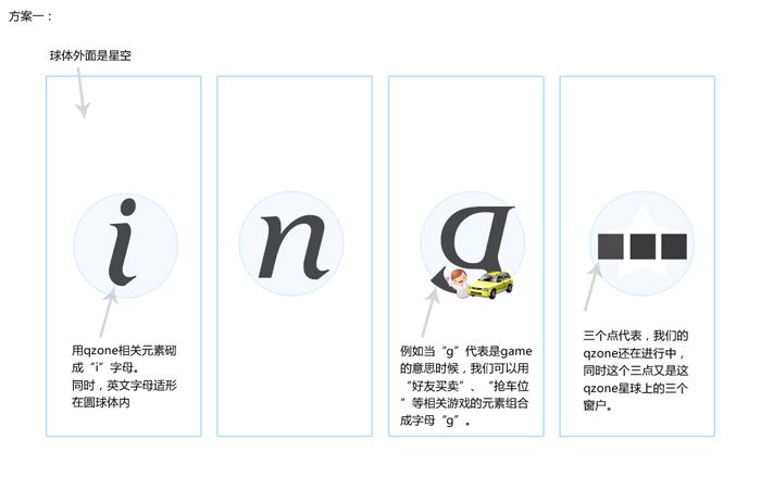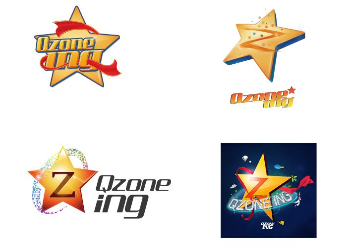 從設計師完成的幾款logo初稿中驚喜的發(fā)現(xiàn),構思和元素選取上有異曲同工之意??臻glogo中的五角星,星球和代表”Qzone”的Z被從新表現(xiàn)和詮釋不同的氣質。加之彩帶,光環(huán)和歡慶的元素的結合表現(xiàn)著慶典主題logo的歡慶氛圍。