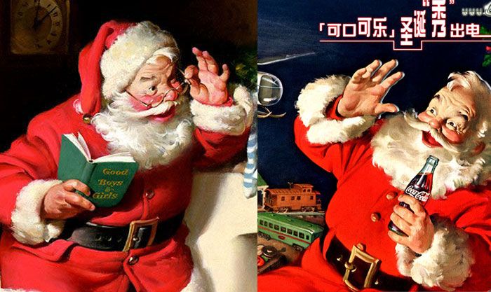 說到可口可樂,人們不得不感嘆這個(gè)品牌的紅白神話,也許很多人不知道,大家熟知的穿紅白衣服的圣誕老人是可口可樂為了宣傳而創(chuàng)作出來(lái)的,在20世紀(jì)30年代和40年代,這一形象一直被用作該公司的廣告活動(dòng)中。久而久之,人們就以為圣誕老人是穿一生紅白裝的老人。而此之前圣誕老人的打扮是五顏六色的。視覺識(shí)別的影響可見一般。