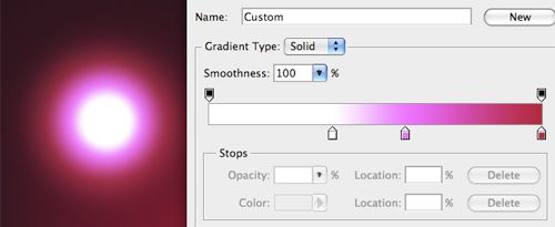 下面要制作一個光效層,并且將會用它來制作所有的光波。新建圖層設(shè)置混合模式為濾色。然后用橢圓選區(qū)工具選擇一個圓形選區(qū),然后設(shè)置20px將選區(qū)羽化(選擇》修改》羽化)(Ctrl+Alt+D)。這樣會讓光效邊緣更像光暈。我喜歡用三種顏色來做漸變。第一個也是最里面應(yīng)該選擇白色或者接近白色的顏色。填充的時候確保從選區(qū)中心開始到選區(qū)邊緣結(jié)束。