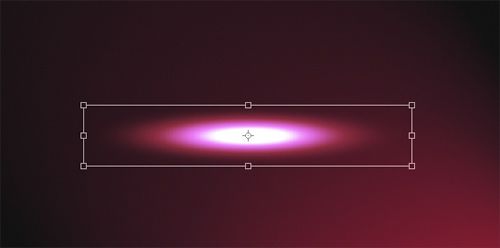 復(fù)制剛在制作的光效圖層(Ctrl+J),隱藏原始層。之后會用這層制作更多的光紋?,F(xiàn)在,比例縮放(編輯》變換》縮放)(Ctrl+T)光效層使其扁平。這樣做可以控制光紋的粗細。