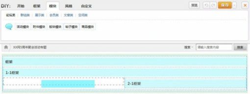 創(chuàng)建新專題后就會自動的進(jìn)入該專題的DIY界面,對比門戶DIY界面專題的DIY界面更像裝扮個人空間的DIY界面,增加了風(fēng)格和自定義選項,更加方便的個性化和美化專題頁面;(如圖4)