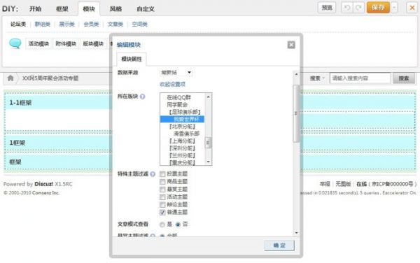 模板名:可以選擇不同的模板,標(biāo)準(zhǔn)版中內(nèi)置目前只有一套;如果有新模板可以將模板文件上傳到 template/default/portal目錄下,文件名必須為portal_topic_*.htm,*為自定義文件名,如果要重新選擇模板,請確保新模板與原模板中可拖拽區(qū)域具有相同的ID,否則將會丟失分部或全部原DIY數(shù)據(jù)