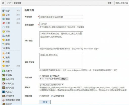 靜態(tài)化名稱:用于專題靜態(tài)化時顯示在鏈接中的個性化名稱,不能重復(fù);