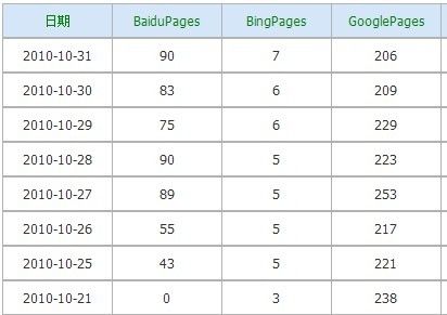 首頁被收錄以后,興奮一段時間,然后繼續(xù)枯燥的完成每日必須完成的任務(wù),還是圍繞原創(chuàng)文章,外部鏈接,友情鏈接,堅持做了一個月零6天,在10月25日的時候,百度開始收錄我的內(nèi)頁。